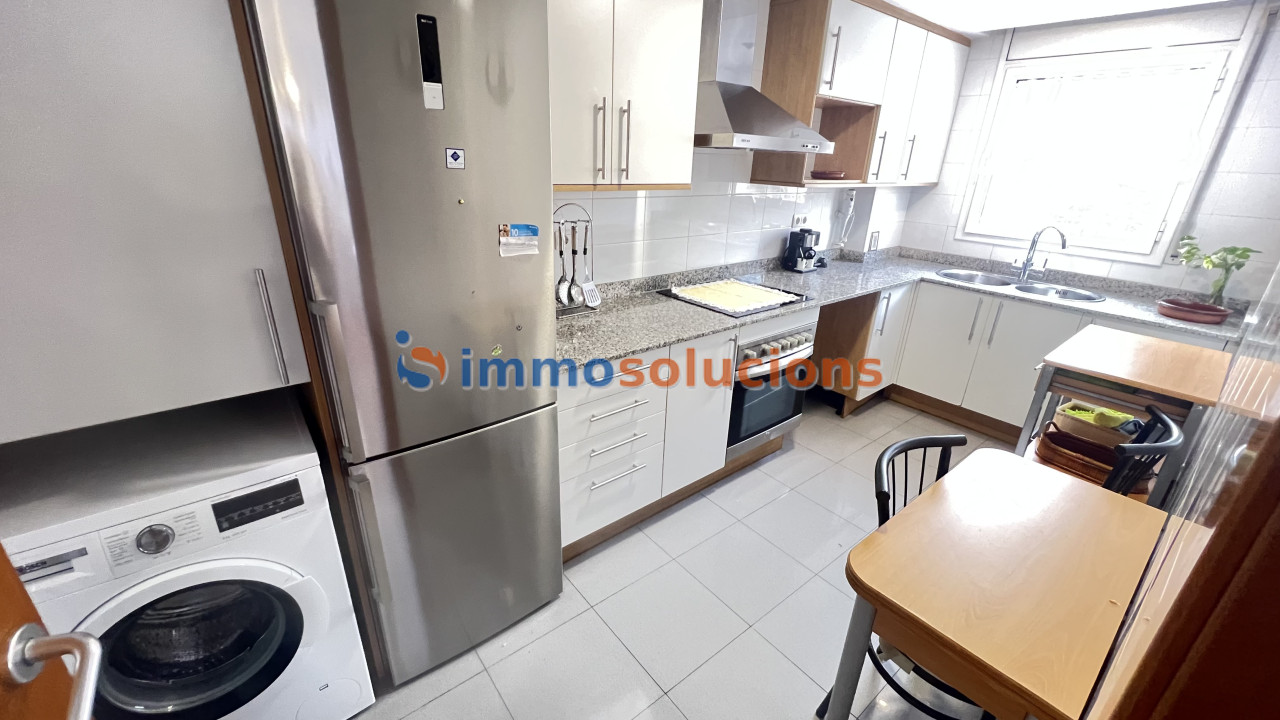 IMMOSOLUCIONS alquila este fantástico piso de 78 m2 útiles. Dispone de dos habitaciones (antes 3), todas exteriores. Cocina office exterior. Amplio salón-comedor de 28m2 muy soleado orientado al Oeste (Sol de tarde). 2 amplios balcones con vistas a la Plaça Andalusia. Vidrios dobles climalit. Suelos de mármol. Carpintería interior de cerezo y exterior de aluminio blanco. Calefacción. Puerta blindada. Vivienda muy soleada, toda exterior.